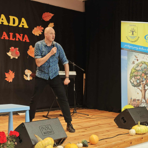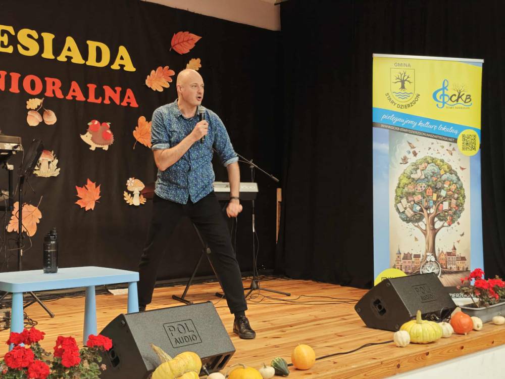 Nietypowym występem scenicznym uraczył nas także Tomasz Biskup, który wspaniale rozweselił całe towarzystwo! Jego świetny kontakt z publicznością i trafne żarty ukazały bardzo wesołe usposobienie naszych szanownych seniorów.