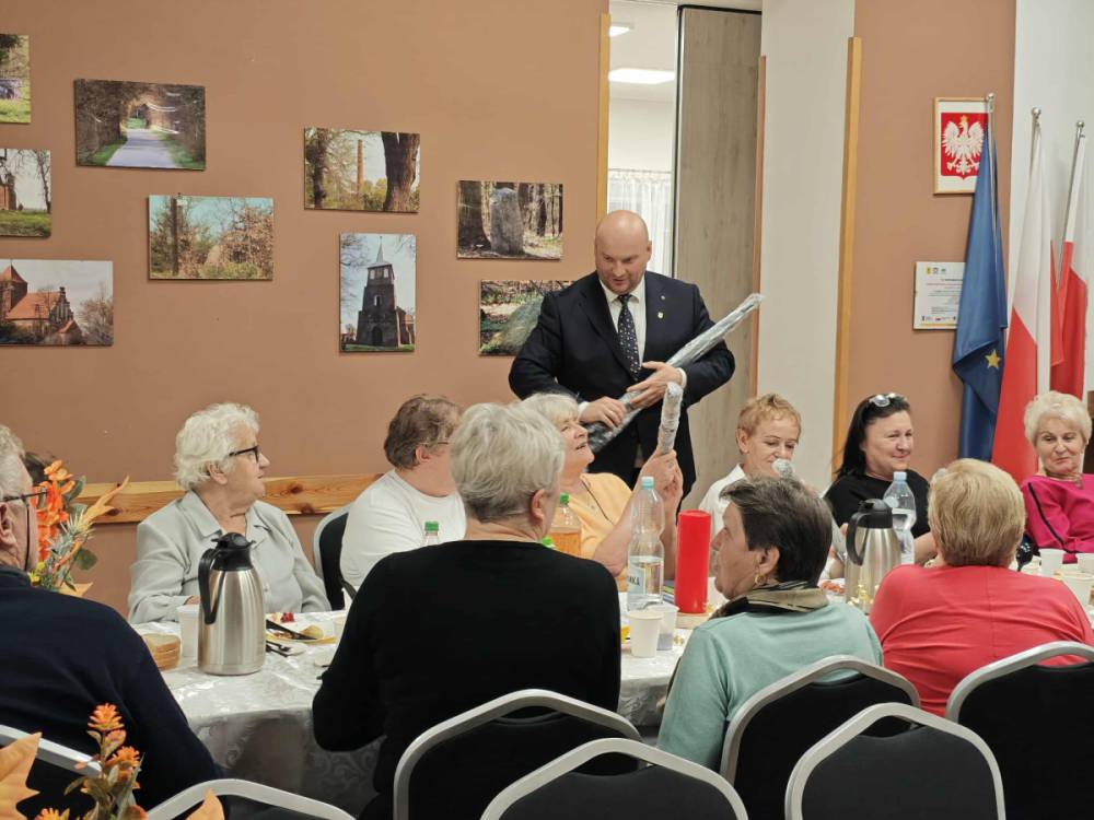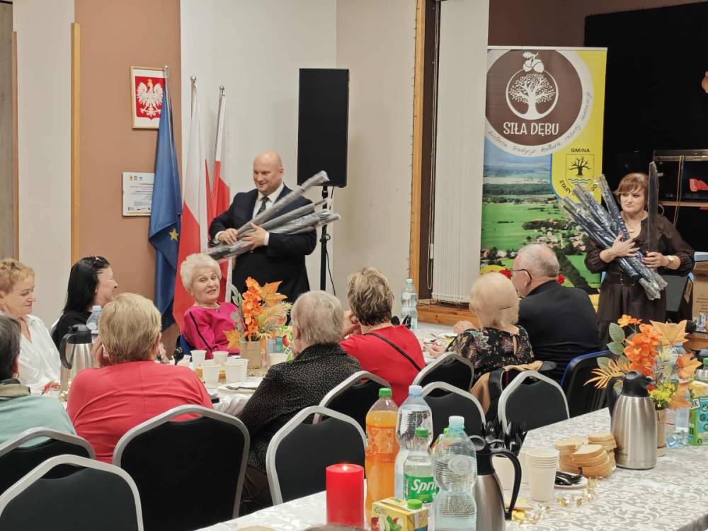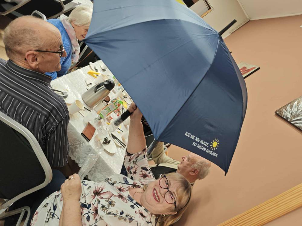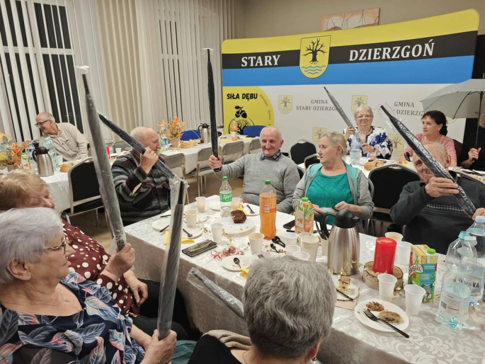 Seniorzy, z okazji ich święta (20 października ogłoszono Europejskim Dniem Seniora,) zostali obdarowani upominkami od Pani Doroty Letkiman – Radnej Powiatu Sztumskiego oraz Stowarzyszenia „Niesiemy Pomoc”, które ufundowało seniorom piękne parasole na jesienną słotę.