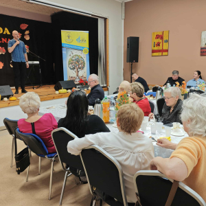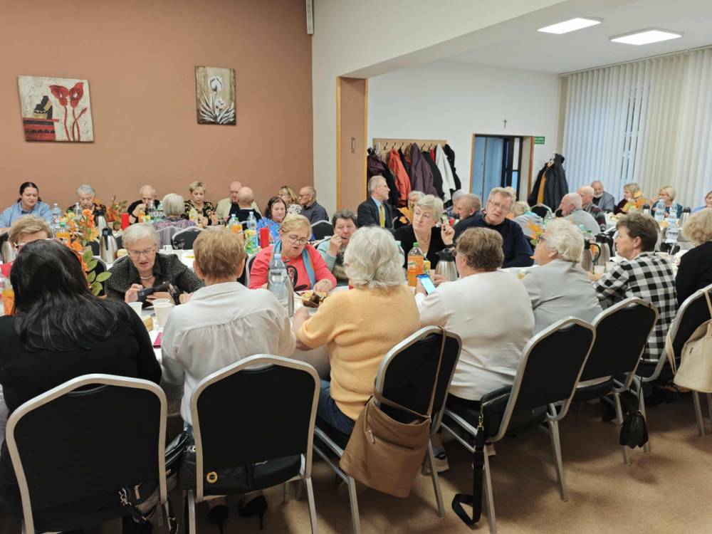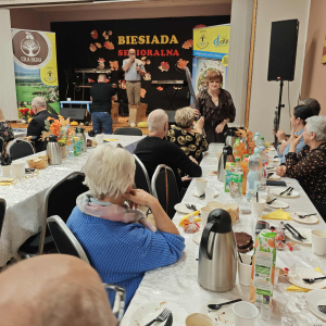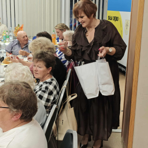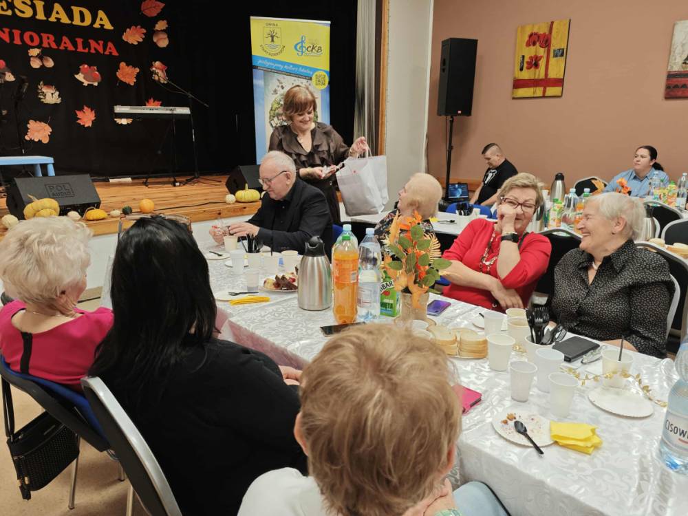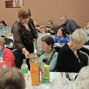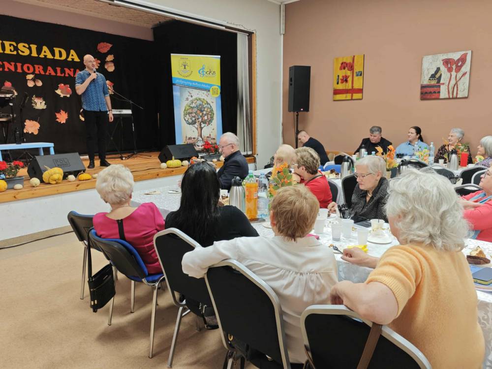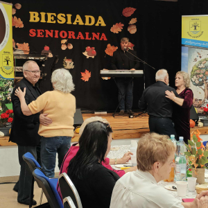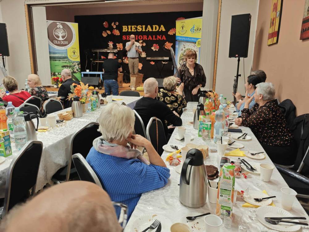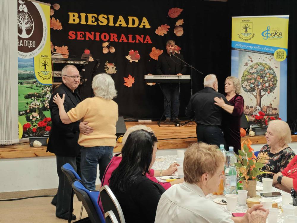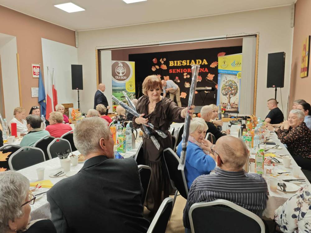 Jednym z najważniejszych elementów biesiady seniorów była muzyka – szczególnie piosenki biesiadne, które od pokoleń towarzyszą wspólnym spotkaniom Polaków. Piosenki biesiadne są częścią naszego dziedzictwa kulturowego – opowiadają o codziennym życiu, miłości, pracy i często mają zabawne teksty! Na scenie wystąpili: Sławomir Buzanowski oraz Jan Kawicki. W dalszej części spotkania seniorzy sami włączyli się do wspólnego śpiewania i tańców. Atmosfera była niezwykle radosna, pełna ciepła i wzajemnej życzliwości. Wielu uczestników podkreślało, że takie wydarzenia są wspaniałą okazją do integracji, rozmów i wspólnego spędzenia czasu.