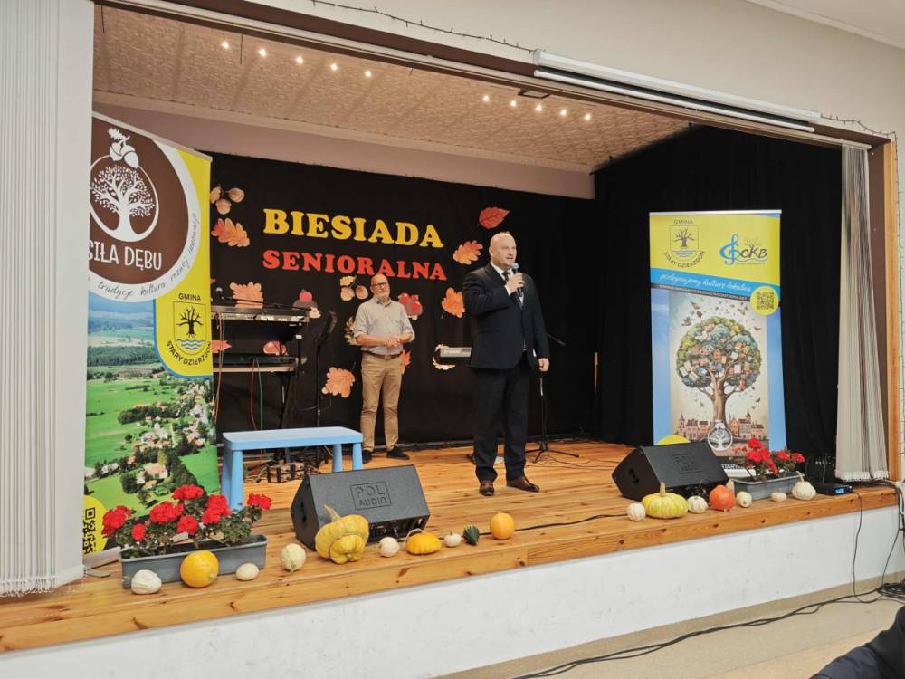 W piątkowe popołudnie, 24 października 2025, w sali Gminnego Centrum Kulturalno Bibliotecznego w Starym Dzierzgoniu, odbyła się Biesiada Seniorów, która zgromadziła licznych mieszkańców naszej gminy. Spotkanie rozpoczęło się od serdecznego powitania gości przez Wójta Gminy Stary Dzierzgoń Wojciecha Puton, który złożył seniorom życzenia zdrowia, pogody ducha i wielu radosnych chwil w życiu codziennym.