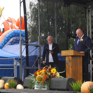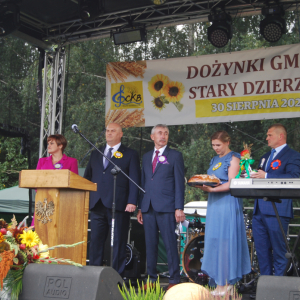 Uroczystego otwarcia biesiady dożynkowej dokonał Wójt Gminy Stary Dzierzgoń Wojciech Puton, który w swoim przemówieniu wyraził głęboką wdzięczność wszystkim rolnikom za ich nieustanny trud, determinację i poświęcenie w zbieraniu tegorocznych plonów. Podkreślił, że to dzięki ich pracy na naszych stołach nie zabraknie chleba – symbolu życia i wspólnoty.