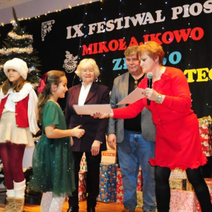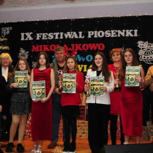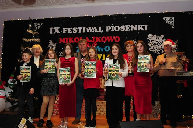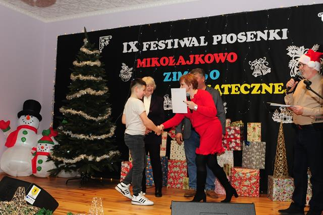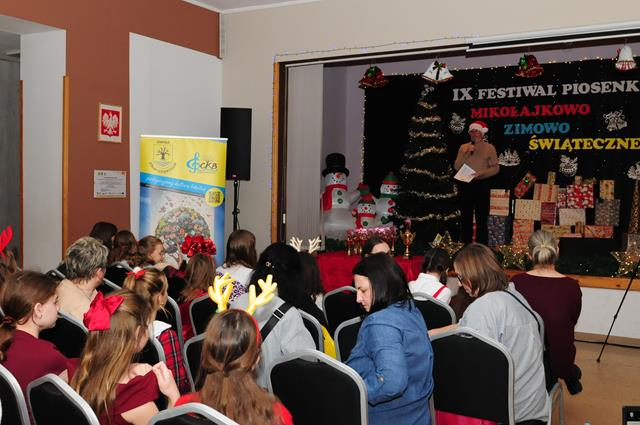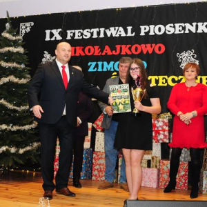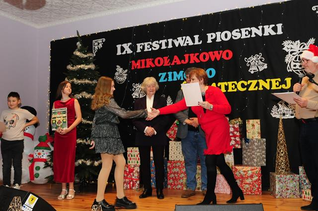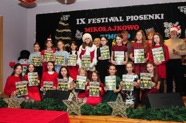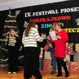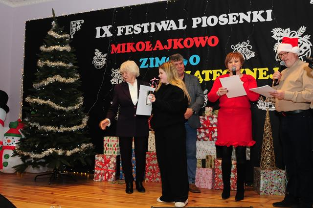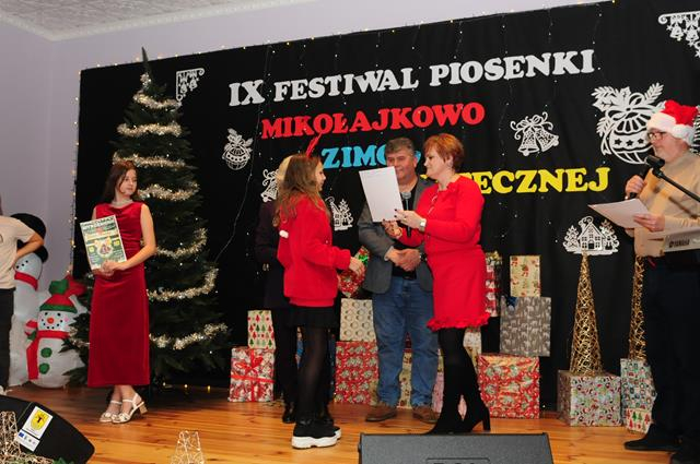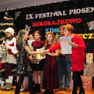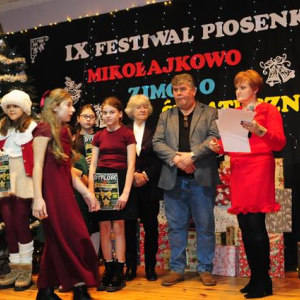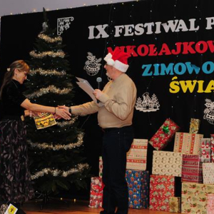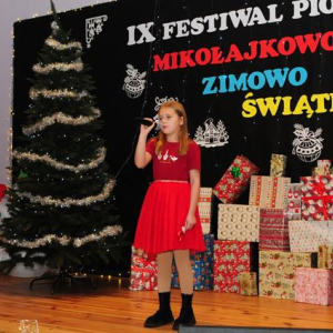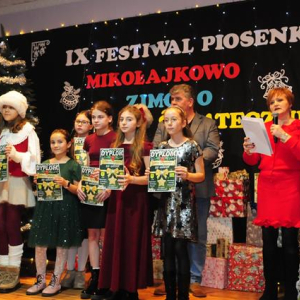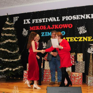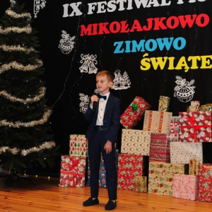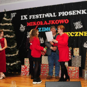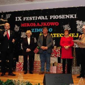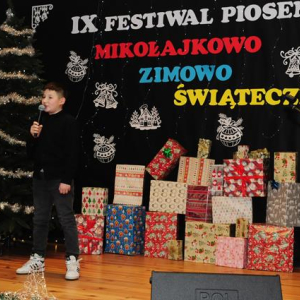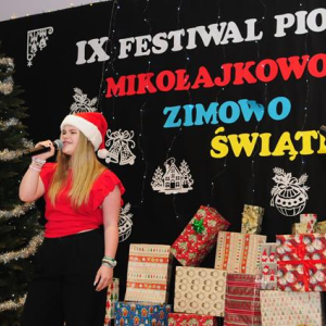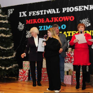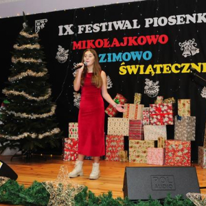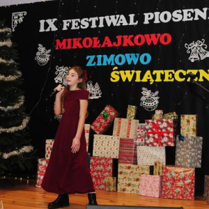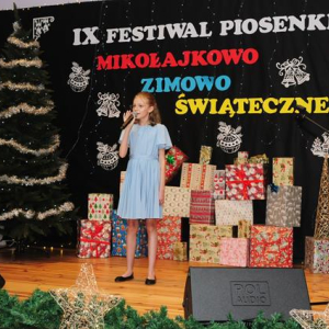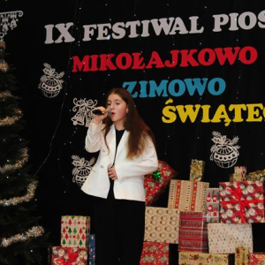 IX Festiwal Piosenki Mikołajkowo-Zimowo-Świątecznej po raz kolejny zamienił scenę w magiczną krainę pełną blasku, radości i muzycznego ciepła. Atmosfera była wyjątkowa — delikatny klimat zimy splatał się z urokiem świątecznych melodii, a dźwięki kolęd i pastorałek unosiły się nad salą jak najpiękniejsze życzenia płynące prosto z serc.