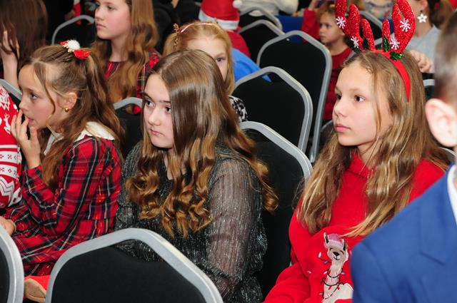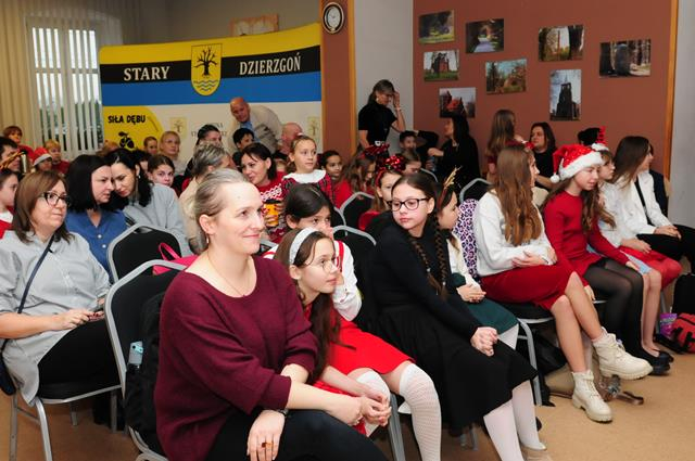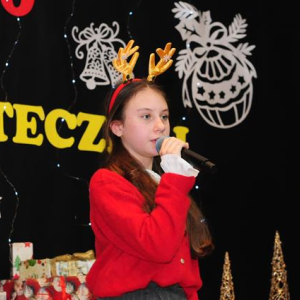 Najważniejszymi bohaterami tego dnia były DZIECI — pełne energii, odwagi i prawdziwej pasji do śpiewania. Każde z nich zaprezentowało się z ogromnym zaangażowaniem, wkładając w występ cały swój talent i emocje. Ich przygotowanie zasługuje na szczere, głębokie uznanie: pewność na scenie, uśmiech i radość z występowania sprawiły, że każdy utwór nabierał wyjątkowego blasku. W ich interpretacjach tradycyjne kolędy brzmiały jak ciepłe opowieści o miłości i nadziei, a pastorałki i piosenki zimowe rozświetlały festiwal niczym świąteczne lampki.