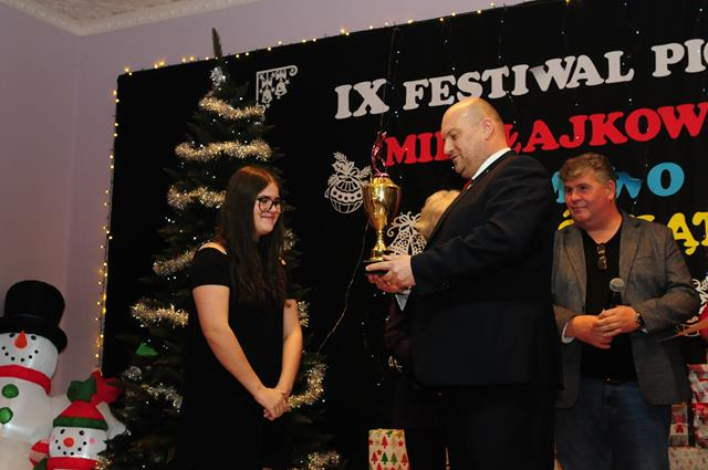 Wójt Gminy Stary Dzierzgoń Wojciech Puton wręczył nagrodę główną GRAND PRIX dla Marty Pellowskiej - najlepszego głosu na festiwalu a zarazem dziewczynki o wielkiej wrażliwości artystycznej! Jej występ dotarł do najgłębszych zakamarków jurorskich serc, ale także poruszył całą widownię!